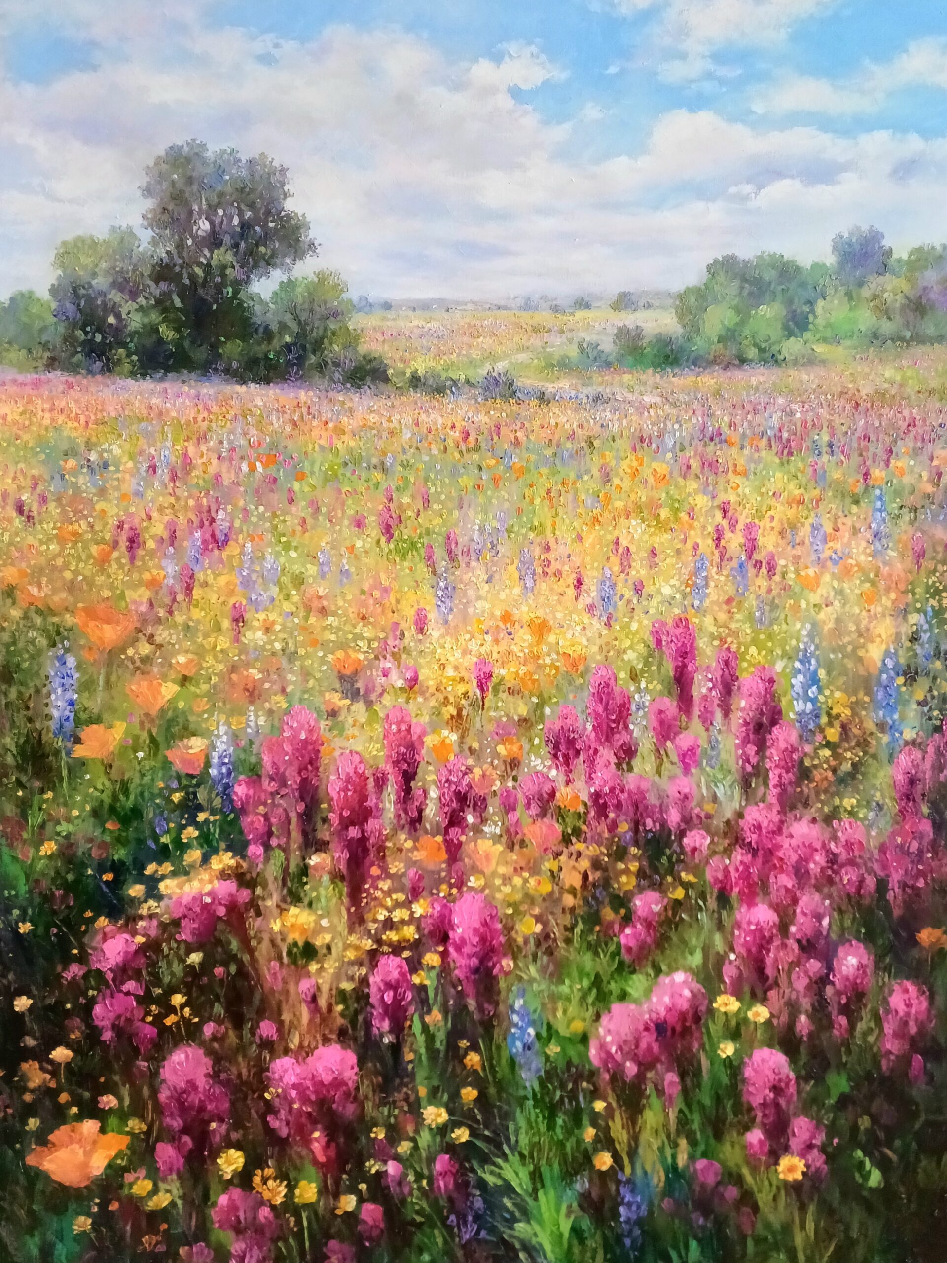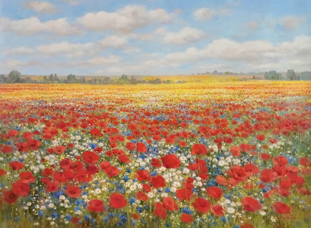 Trained in the Impressionist vein, Gantner has resolved the age-old Poussiniste-Rubeniste conflict by combining the strengths and qualities of line with color. This is apparent in Gantner’s return to Giverny to repaint Monet’s Japanese bridge and water lilies. The spontaneous quality that defined the impressionism of Monet has given way to a painted drawing that is a controlled application of color structured within a strong linear composition.